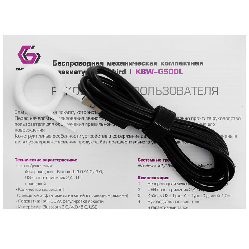 Название продукта - KeyBoard USB, Gembird KBW-G500L, BT/2.4 GHz wireless, USB, black